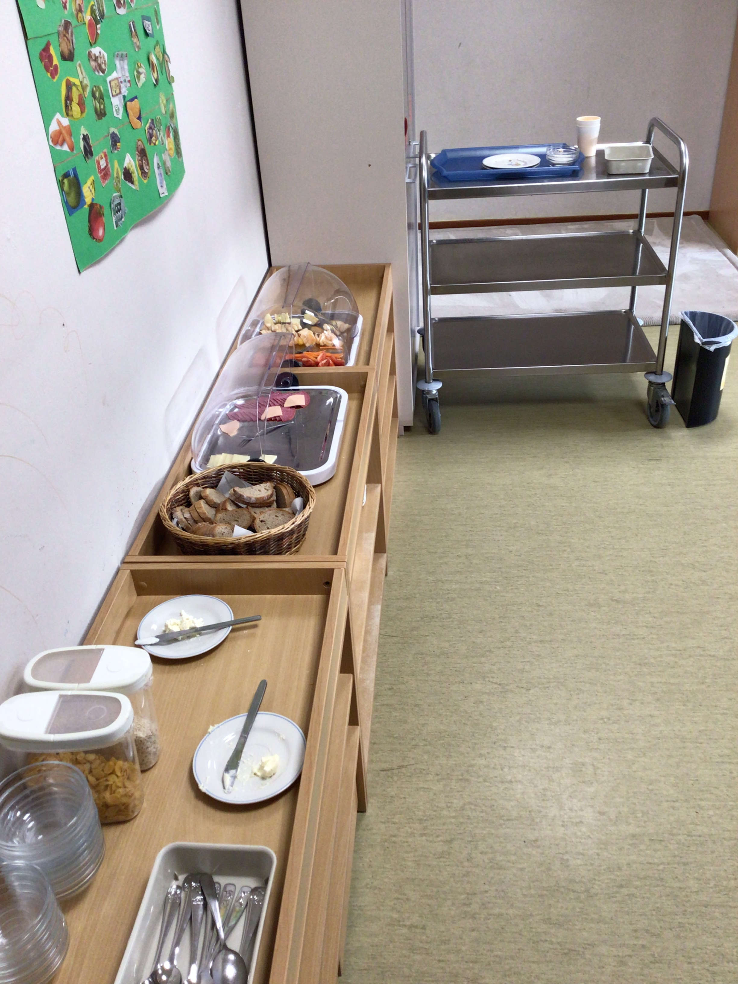 8:00 Uhr bis 10:30 Uhr können die Kinder sich hier immer wieder bedienen,
